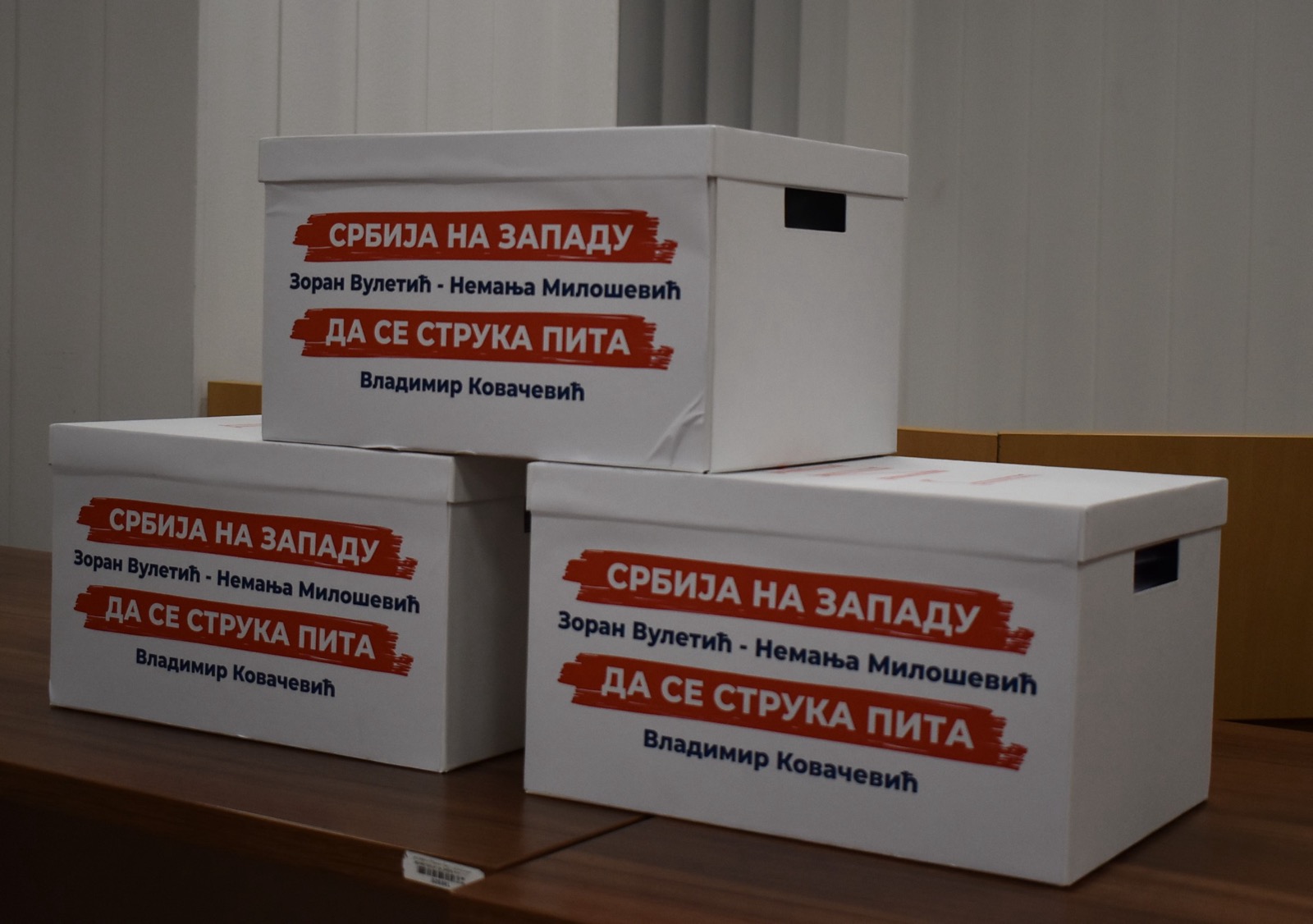Liste za parlamentarne izbore i odbornike u Gradskoj skupštini (Beograda) sinoć je predala koalicija „Srbija na Zapadu – Da se struka pita“ (Zoran Vuletić – Nemanja Milošević – Vladimir Kovačević).